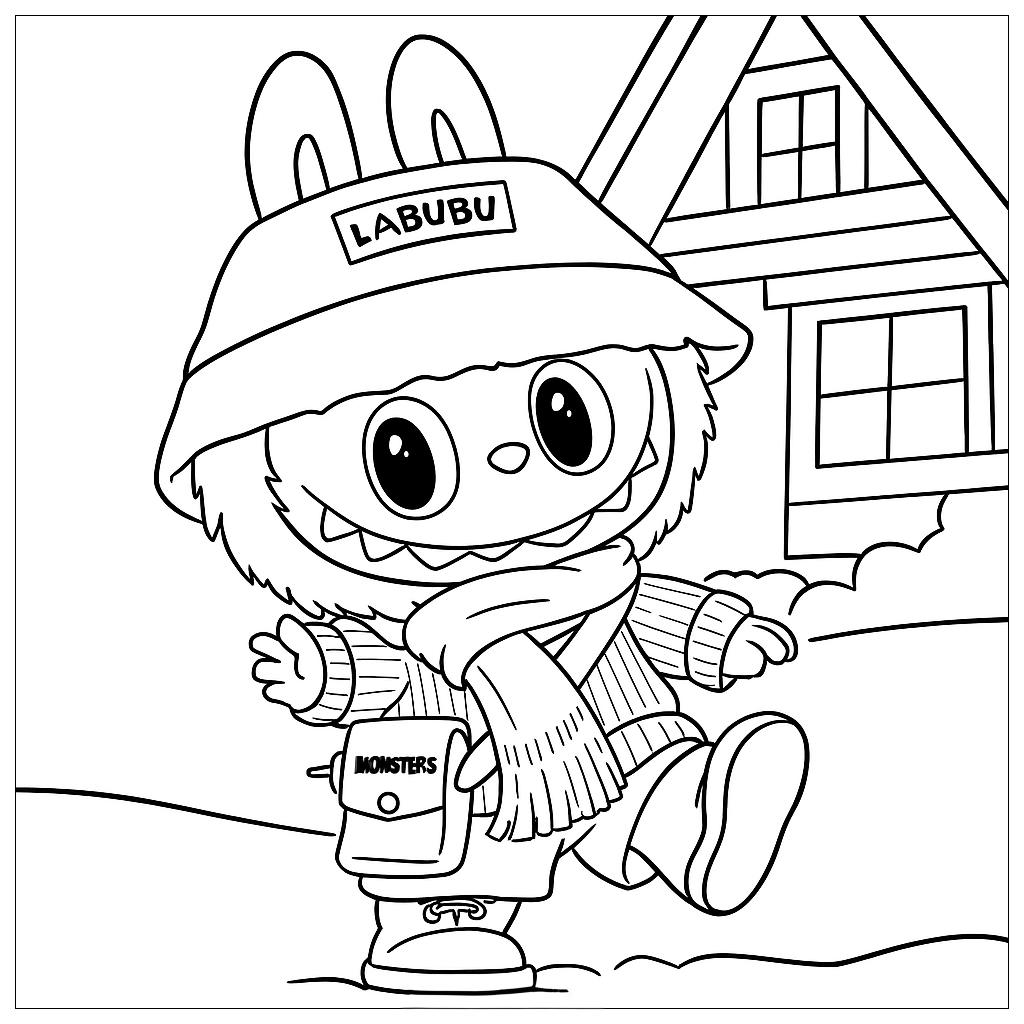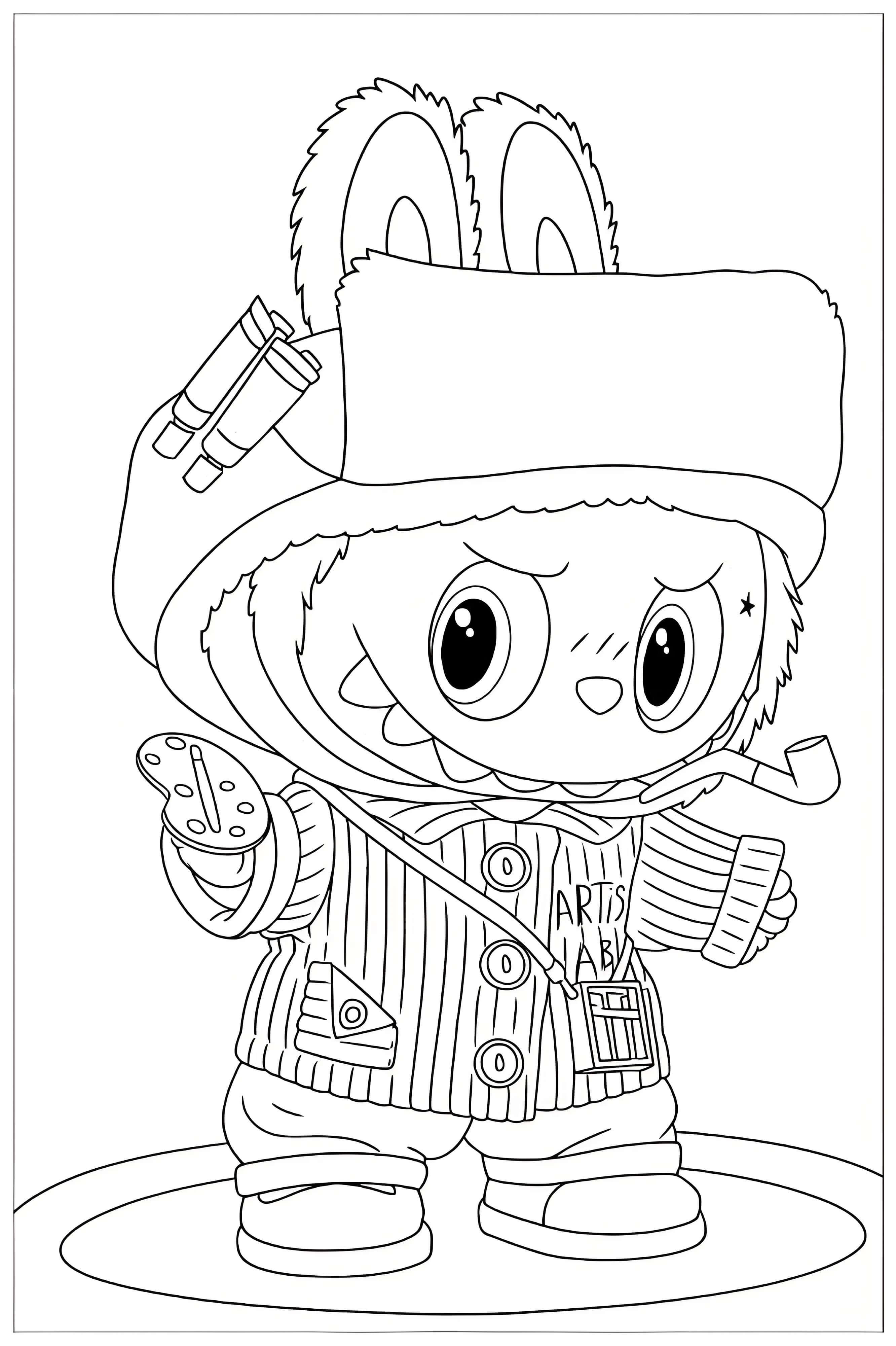 Step into the world of colors with this adorable coloring page featuring Labubu! This fuzzy creature with big, expressive eyes and fluffy ears is happily dressed up as a scarf and carrying a bag, complete with a vibrant, expressive outfit. The simple background with a canvas and a brush creates a peaceful scene, perfect for coloring fun and keeping kids hydrated. Labubu’s charming look and active expression make this page a delightful addition to any coloring project, inviting children to express themselves through their favorite colors!